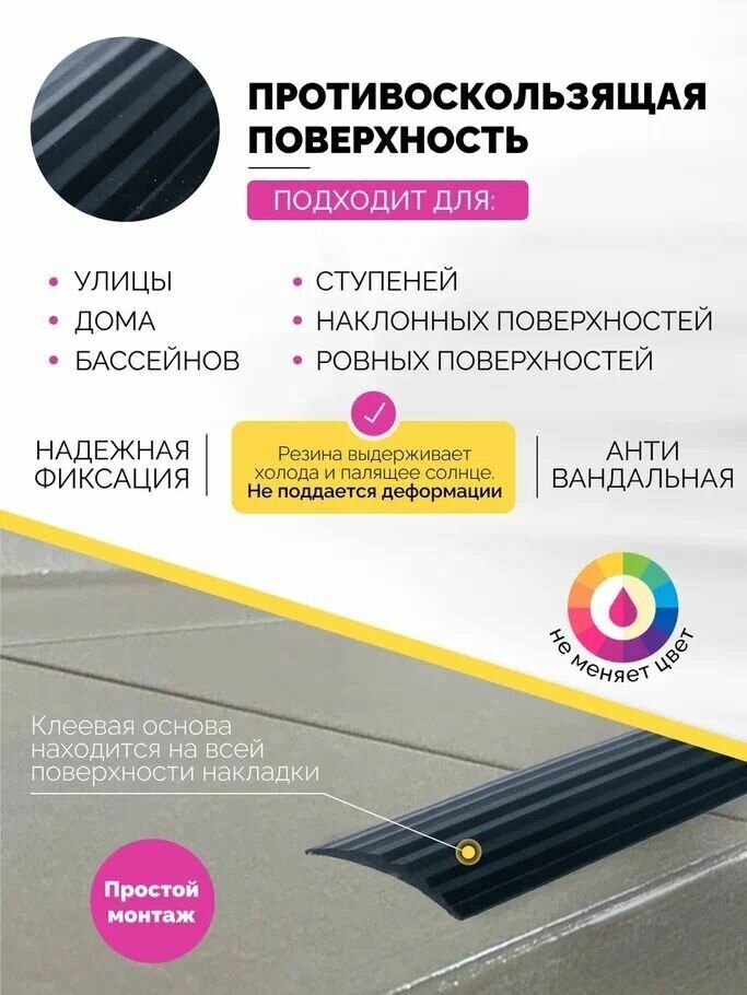 Отзывы на Самоклеящаяся,Противоскользящая резиновая тактильная полоса против скольжения 35мм х 5мм, длина 2.4м