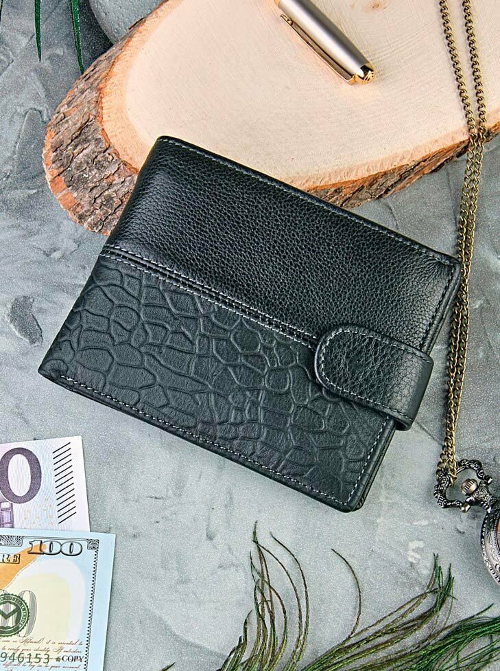 Отзывы на Портмоне, на кнопке, натуральная кожа, отделения для карт и монет, подарочная упаковка, потайной карман, черный