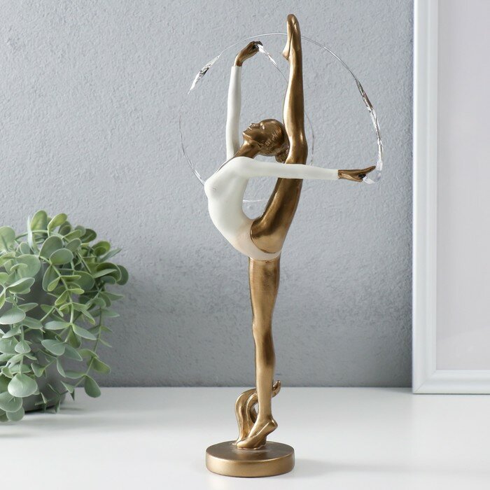 10 цен на Сувенир полистоун "Гимнастка с лентой" бронза 14х6,5х32,5 см, "Hidde", цвет белый