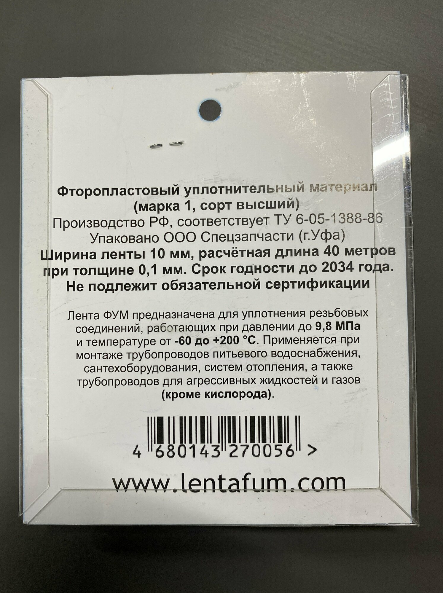 Лента ФУМ 10 мм*40м, Россия, масса 70 граммов информация: