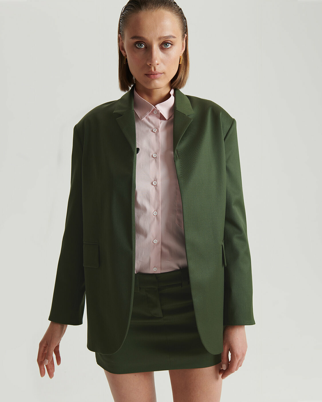 Жакет оверсайз из костюмной шерсти Naked Shoulders, размер L, зеленый информация: