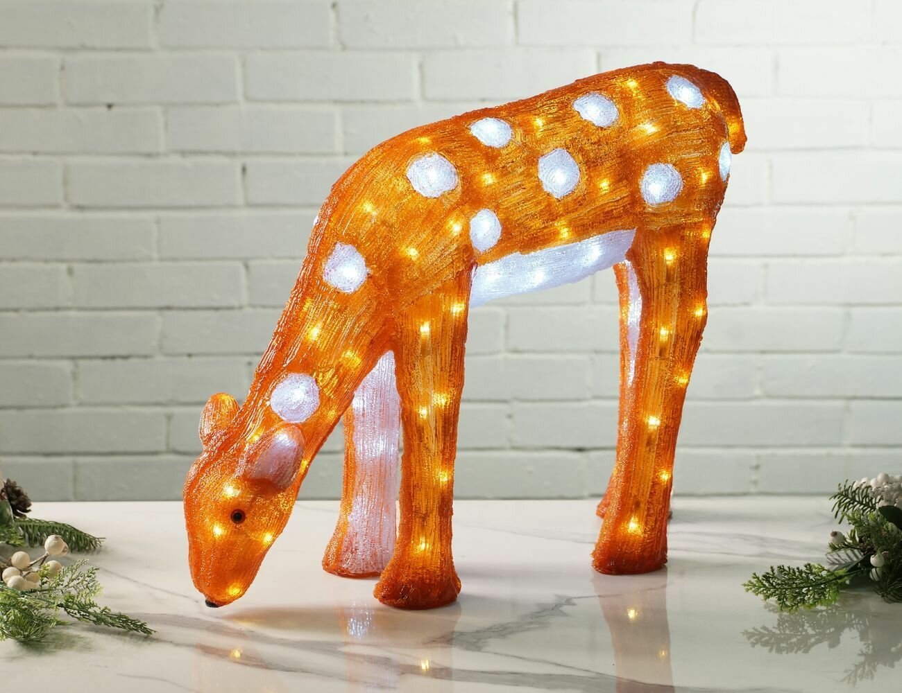 10 цен на Светящаяся фигура оленёнок карино, акрил, 100 холодных белых LED-огней, 49 см, таймер, уличная, Kaemingk 491348