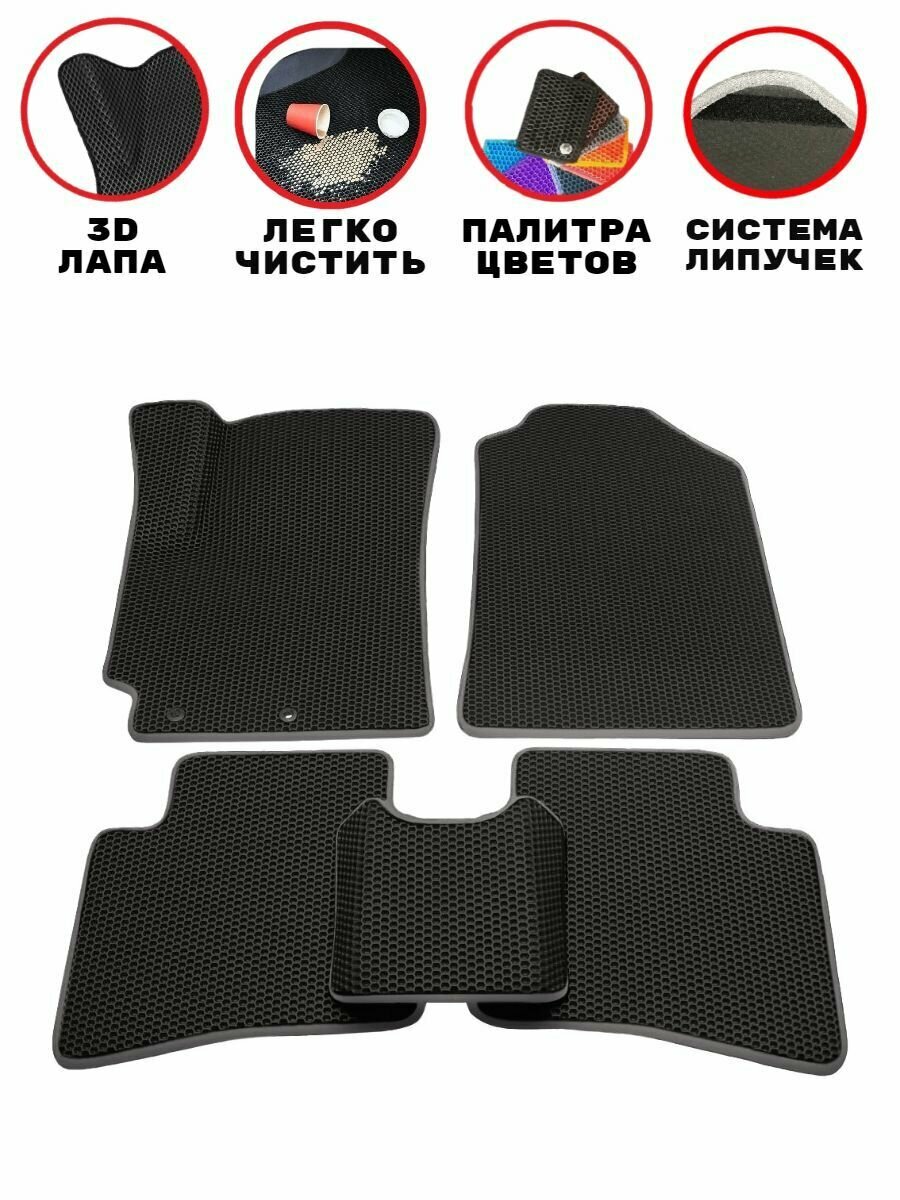 Комплект ковриков EVA/ЭВА для Changan Lamore, Чанган Ламоре, 2023 г., с 3Д лапой, черные соты с черным кантом 2 790 ₽