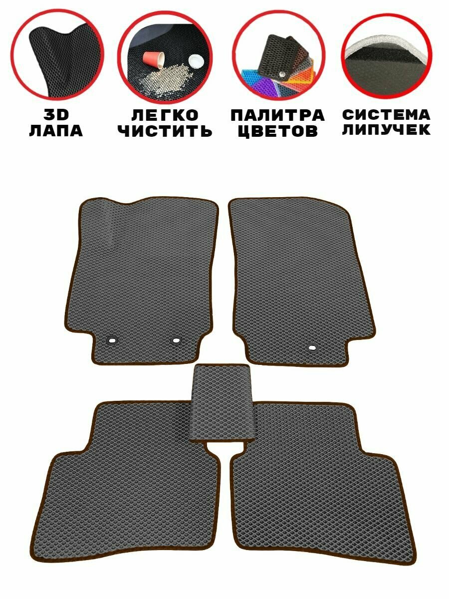 10 цен на Комплект ковриков EVA/ЭВА для Changan Lamore, Чанган Ламоре, 2023 г., с 3Д лапой, серый ромб с коричневым кантом