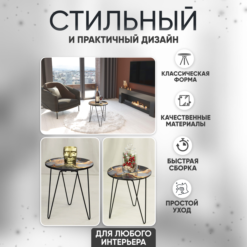 Отзывы на Журнальный столик круглый, прикроватный стол лофт, Sheffilton, Solmax&Home черный алмаз 40х40х46 см