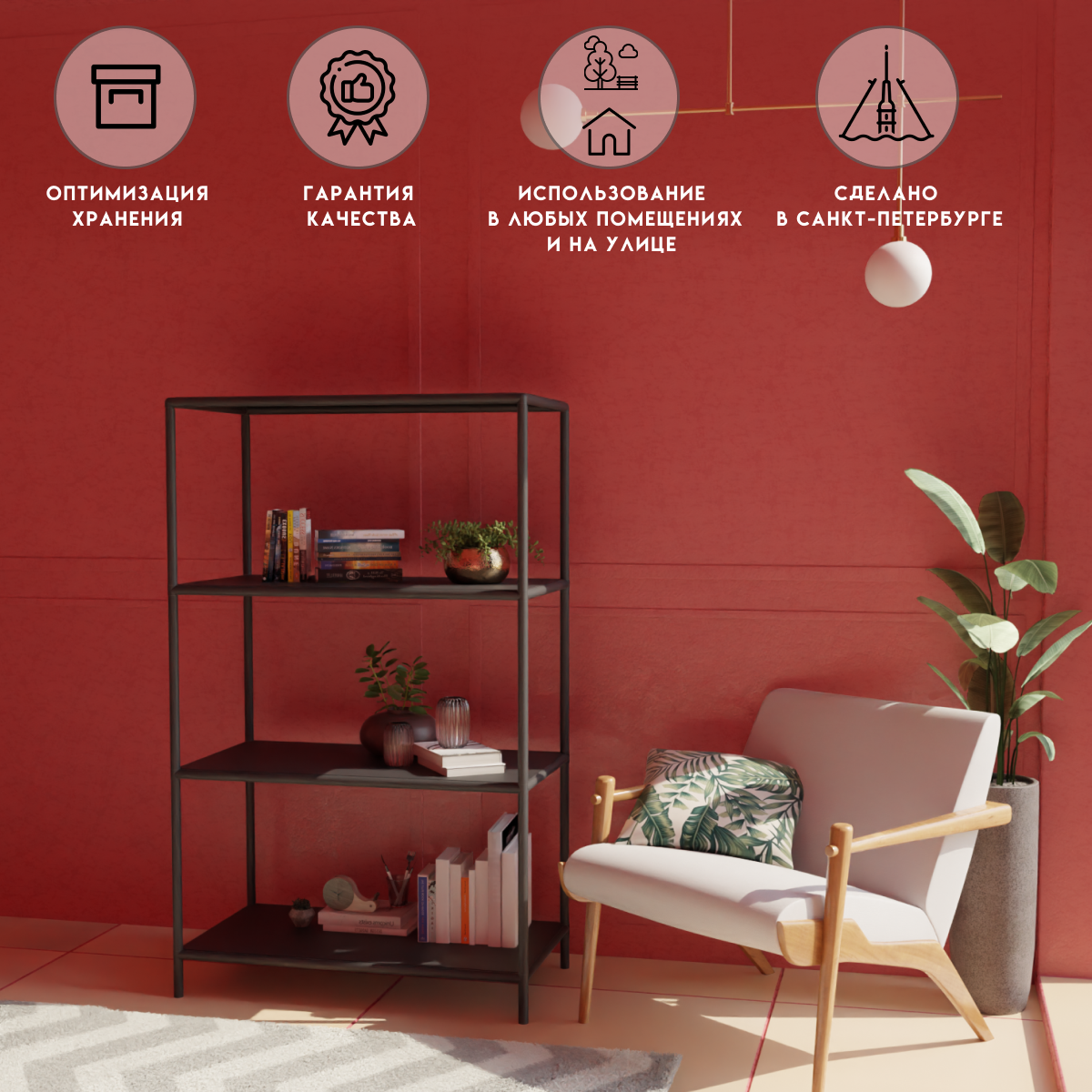 Стеллаж - этажерка в стиле лофт металлические, мебель лофт для гостиной прихожей спальни ванной кухни, полки напольные столик, обувница, подставка для цветов, 4 полки, 50х95x155 см, Чёрный, Delta-Loft информация: