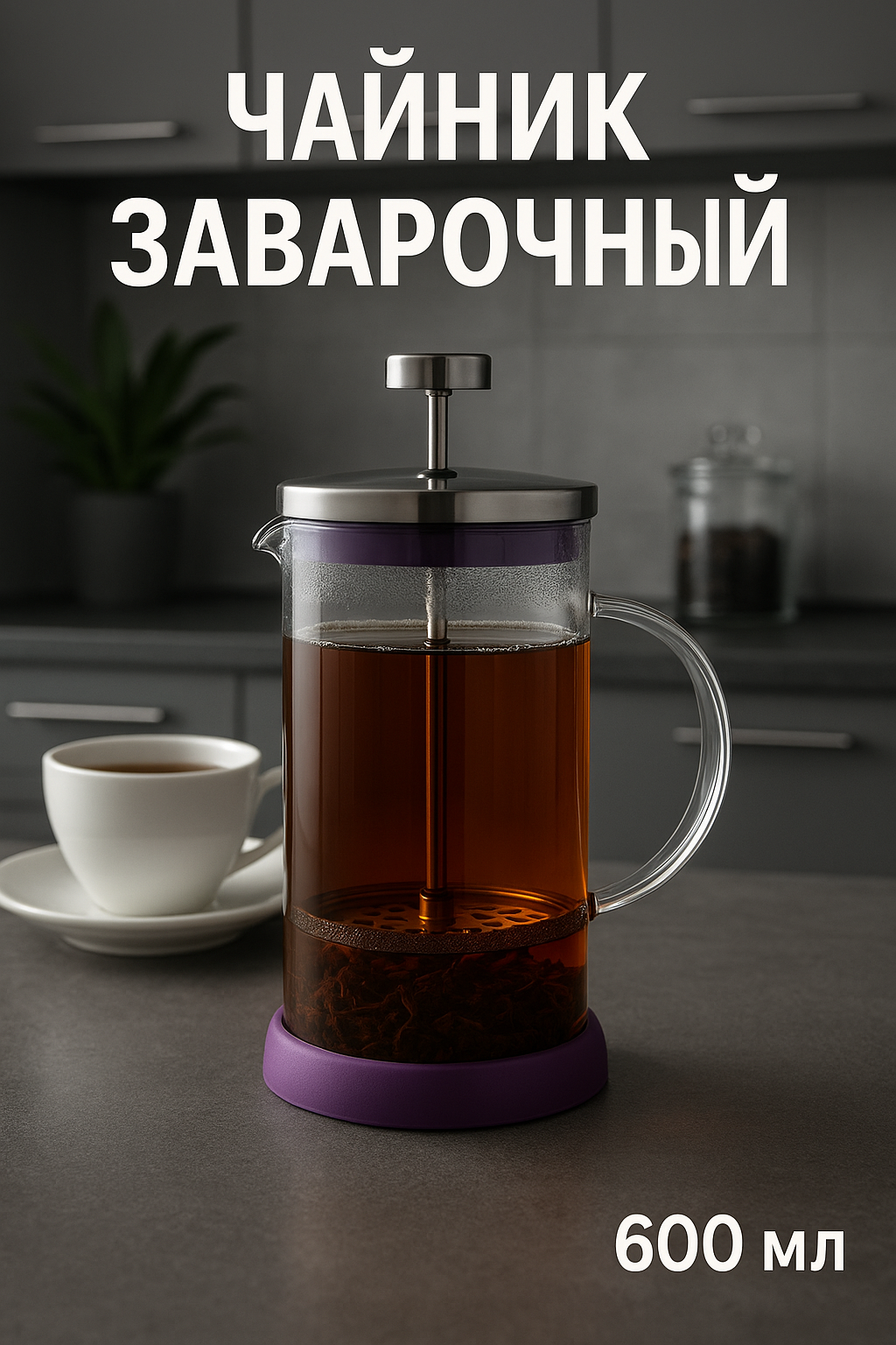 Чайник заварочный френч - пресс «Келли», 600 мл, стекло, цвет сиреневый информация: