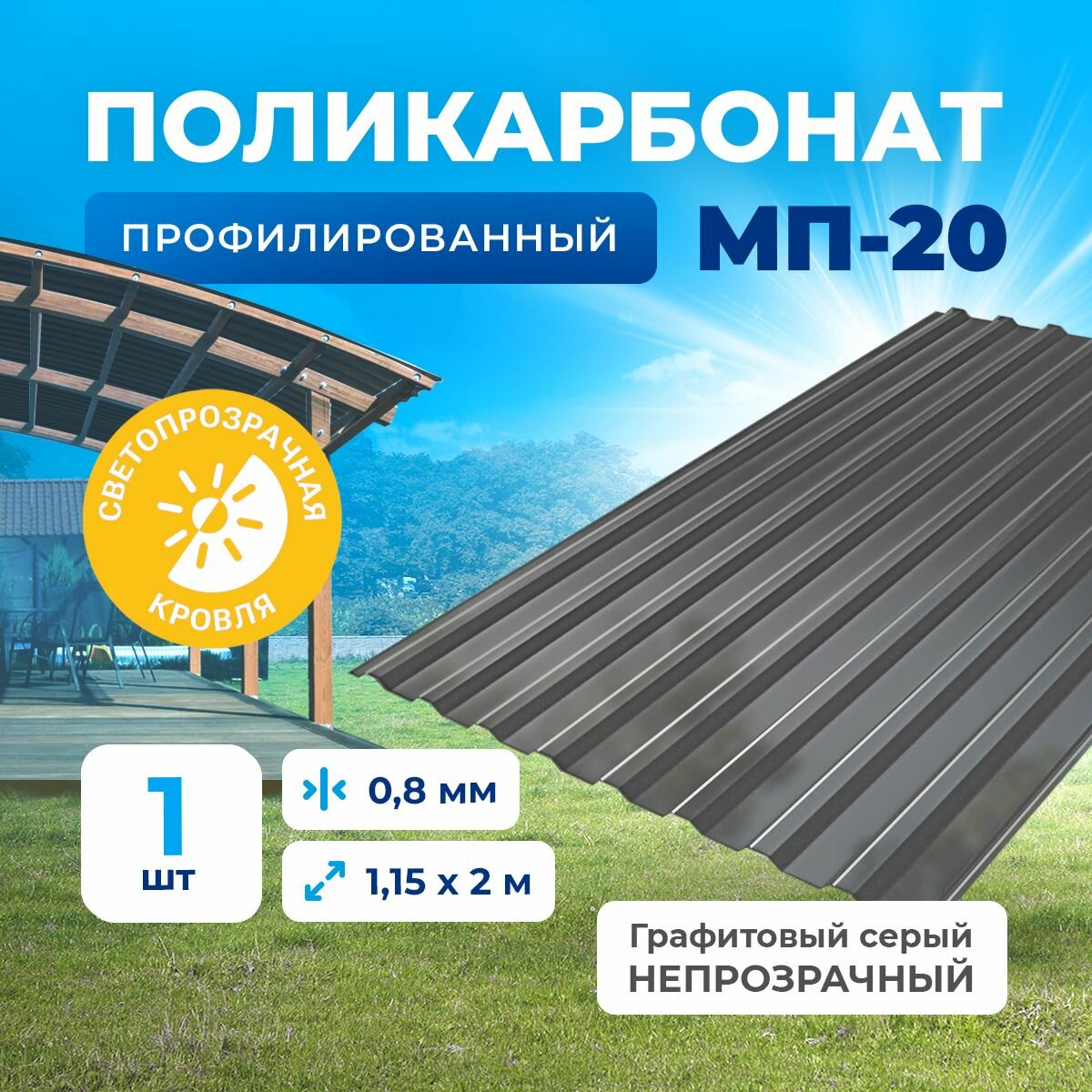 Мы выбрали 10 лучших цен на Профилированный монолитный поликарбонат - пластиковый профлист. Цвет Графит-серый непрозрачный! 0.8мм 2м 1 лист. Перед тем как купить Профилированный монолитный поликарбонат - пластиковый профлист. Цвет Графит-серый непрозрачный! 0.8мм 2м 1 лист посмотрите найденные предложения из Яндекс Маркета и других сайтов на основе XML фидов.