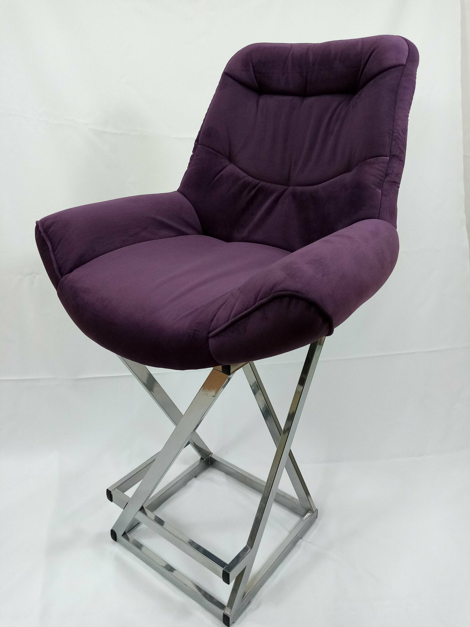 10 цен на Кресло полубарное Гранд, велюр фиолетовый, каркас серый металлик