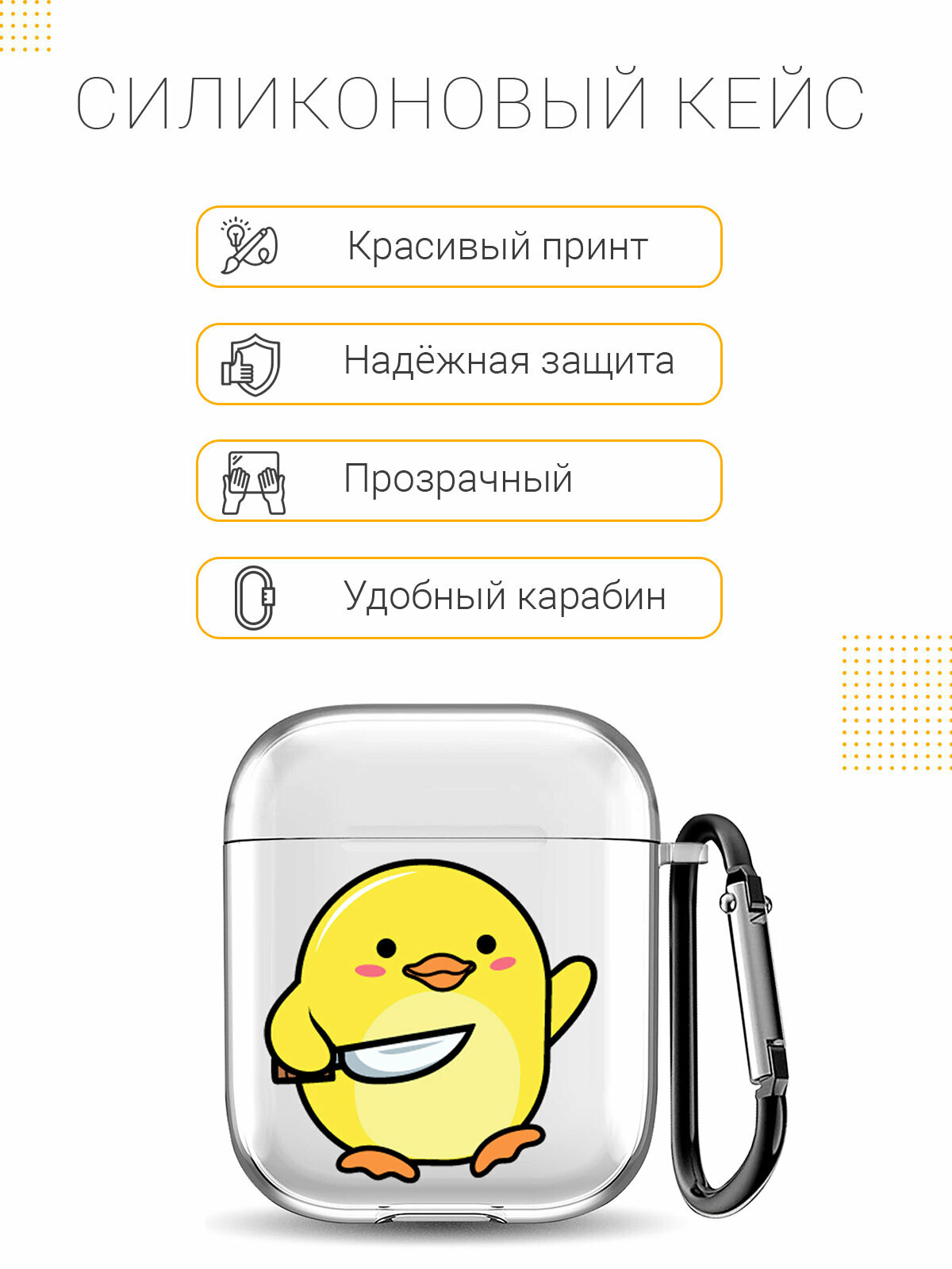 Прозрачный чехол для наушников Apple AirPods 1 / 2 с 3D принтом "Chick With Knife" 431 ₽
