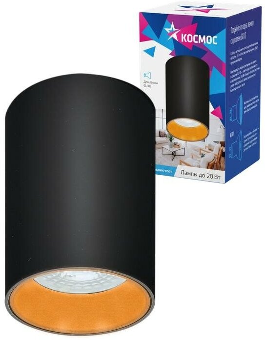 Светильник светодиодный FixtGU10_002Black под лампу GU10 накладной черн. | код.KFixtGU10_002Black | космос (20шт.в упак.) информация: