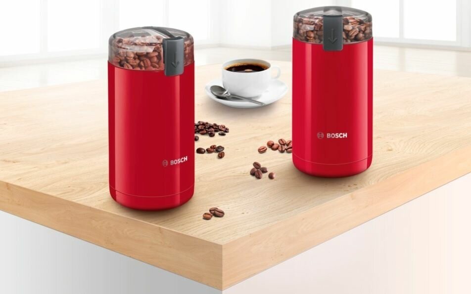 Кофемолка электрическая Bosch TSM 6A014R, до 75 г зерен, 180 Вт, один режим помола, 150 грамм в минуту, нож из нержавеющей стали, красная