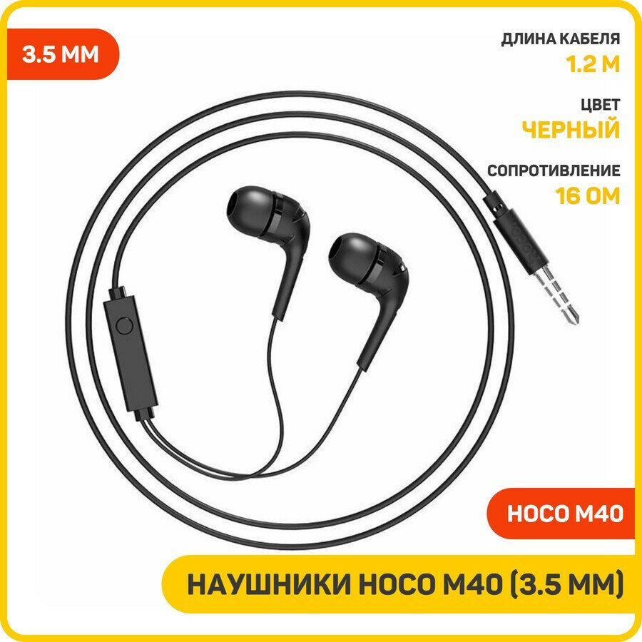 Наушники Hoco M40, проводные, вакуумные, микрофон, Jack 3.5 мм, 1.2 м, черные