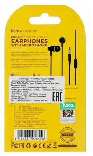 Наушники Hoco M34 Honor - Черные информация: