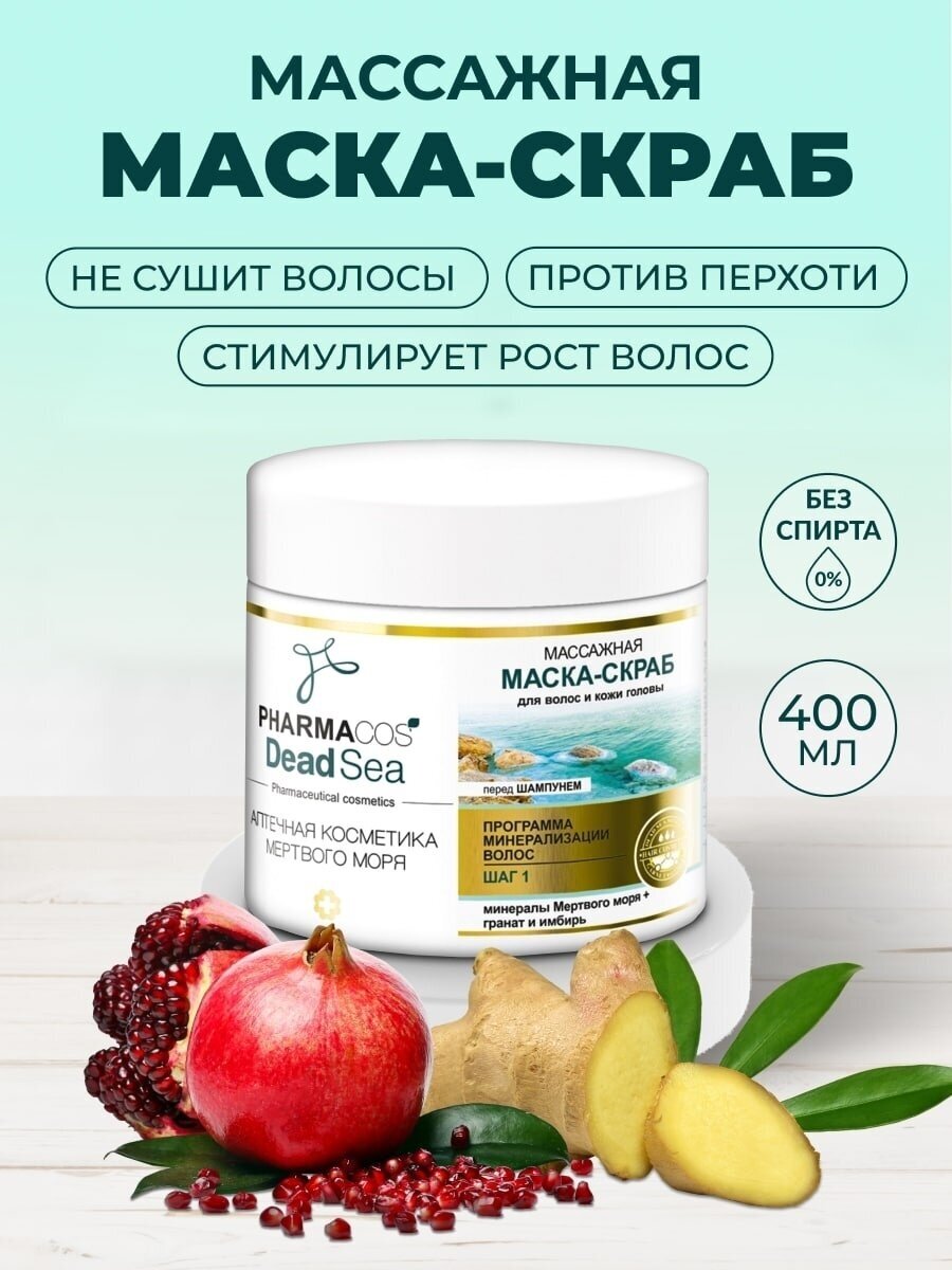 Витекс Маска-скраб для волос массажная Pharmacos Dead Sea для любого типа с минералами мертвого моря и с экстрактом граната и имбиря 400мл / уход и