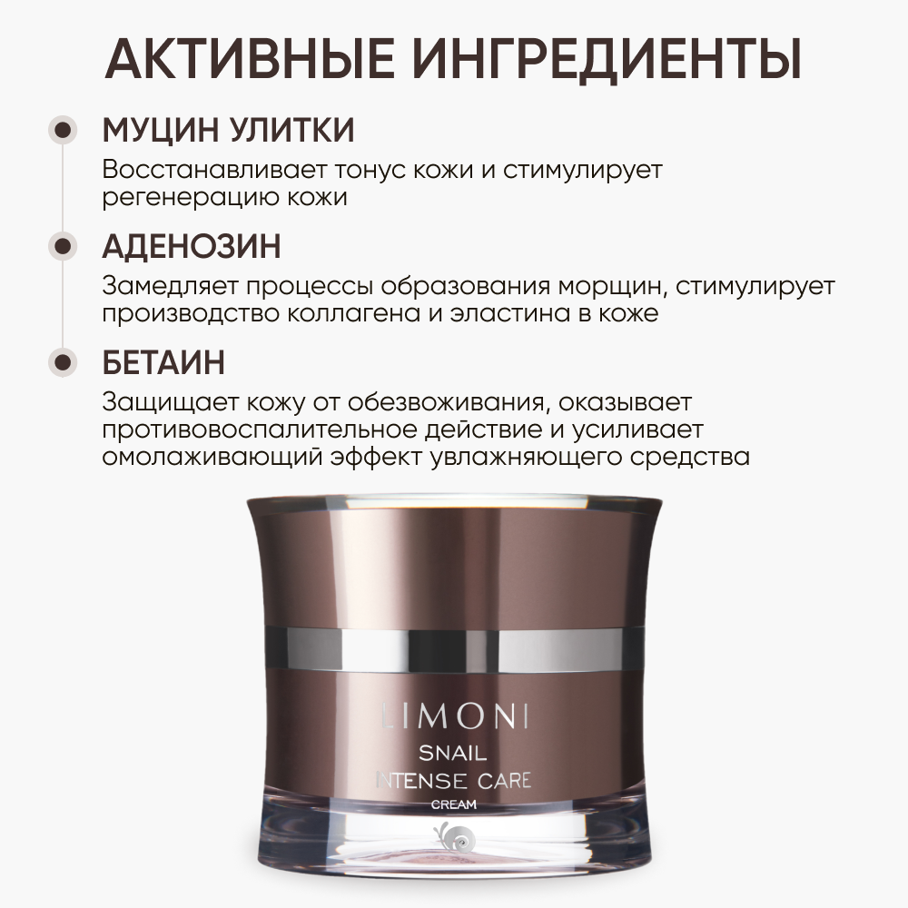 LIMONI Крем для лица Snail Intense Care Cream интенсивный с экстрактом секреции улитки, 50 мл информация: