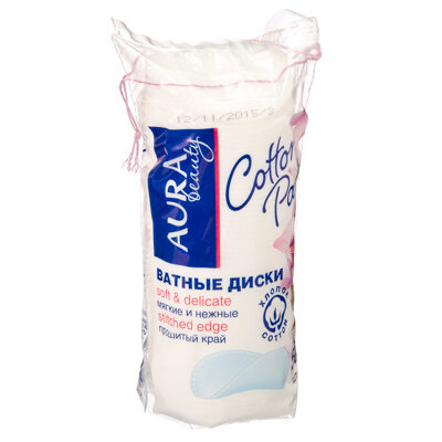 Aura Диски ватные 100% хлопок с эффектом "прошитого" края, 150 шт
