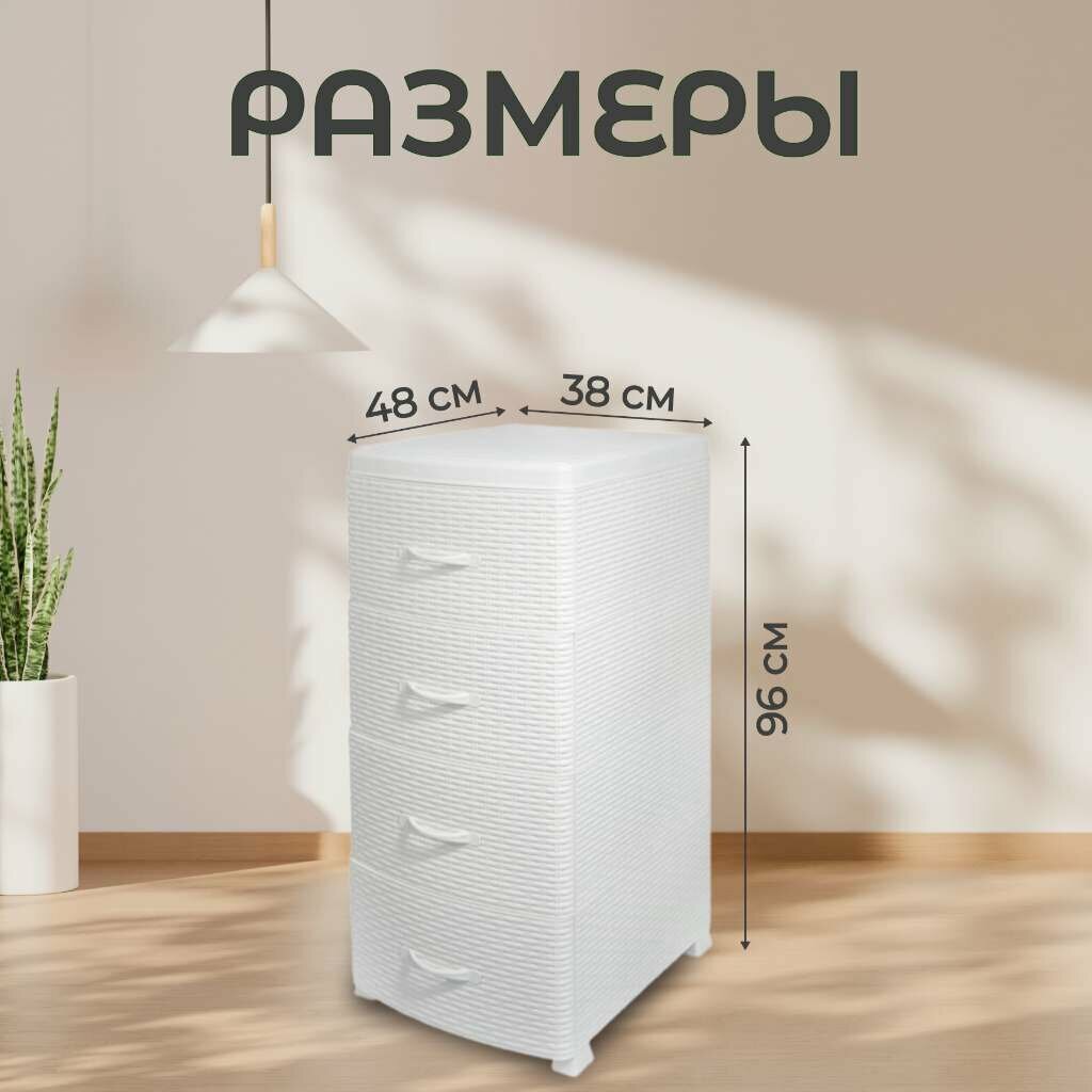Комод пластиковый Ротанг с 4 ящиками / универсальный стеллаж для хранения вещей / органайзер для аксессуаров, цвет белый