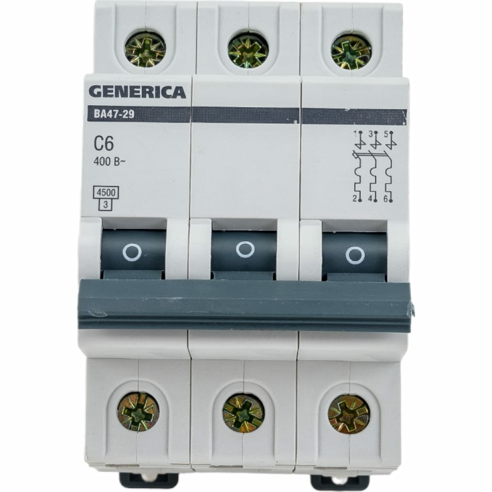Выключатель автоматический трехполюсный ВА47-29 6А C 4,5кА GENERICA. MVA25-3-006-C IEK