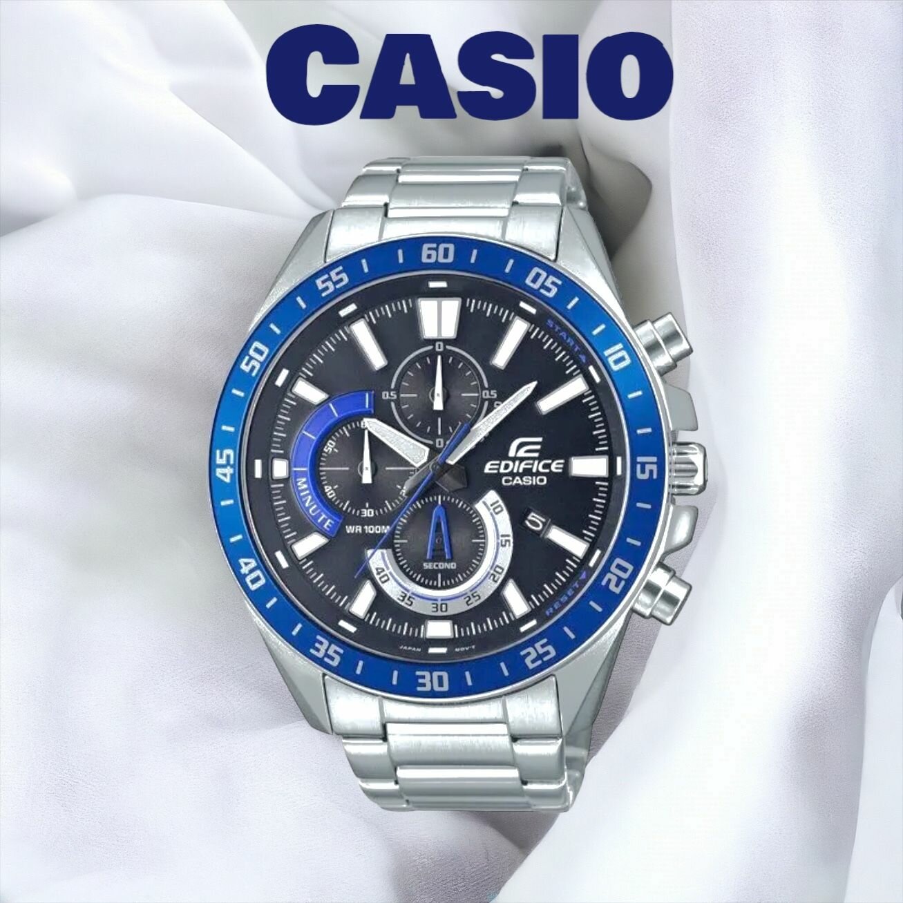 EFR-571DC-2A Casio наручные часы кварцевые WR100 (10 атм) мужские черный, синий отображение числа подсветка стрелок минеральное стекло