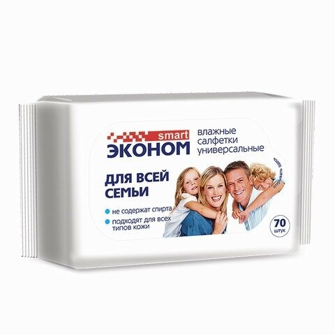 Влажные салфетки Эконом smart для всей семьи, 70 шт.
