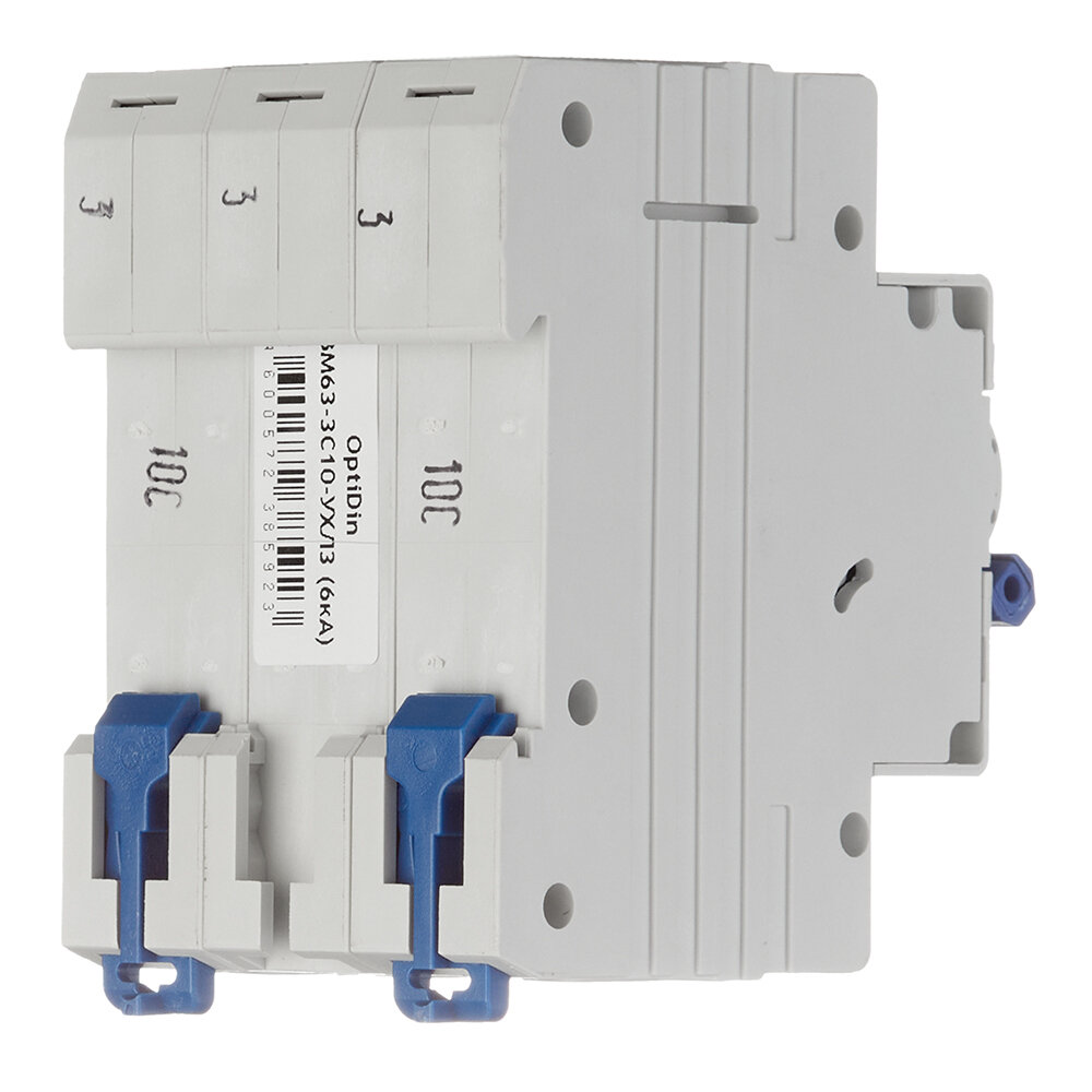 Выключатель автоматический модульный BM63 OptiDin 10А 3П трехполюсный C C 6кА 260789 КЭАЗ