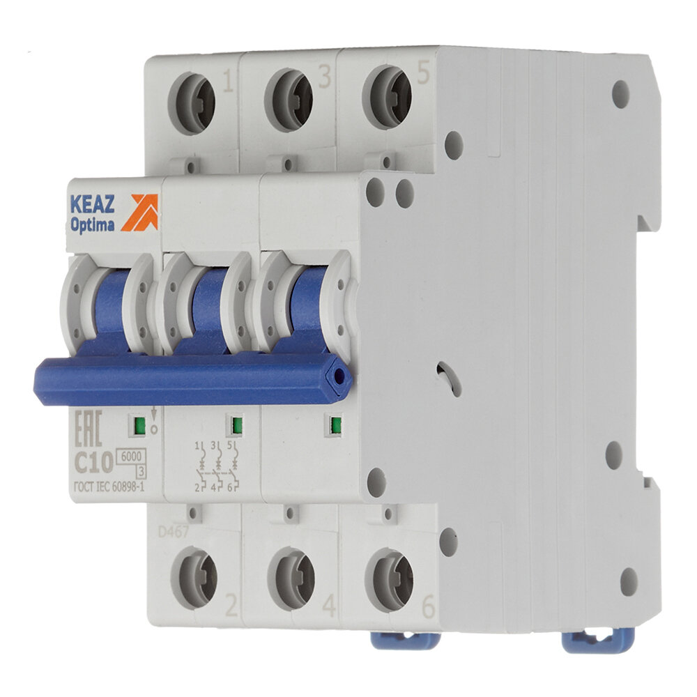 Выключатель автоматический КЭАЗ 3-полюсный (3P) 10А хар. C тип AC 6кА 260789 OptiDin BM63 (3 модуль)