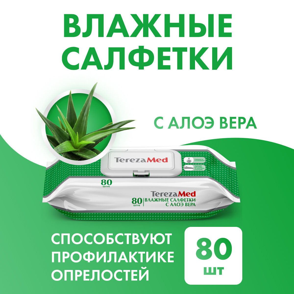 TerezaMed Салфетки влажные очищающие Алоэ вера, 80 шт информация:
