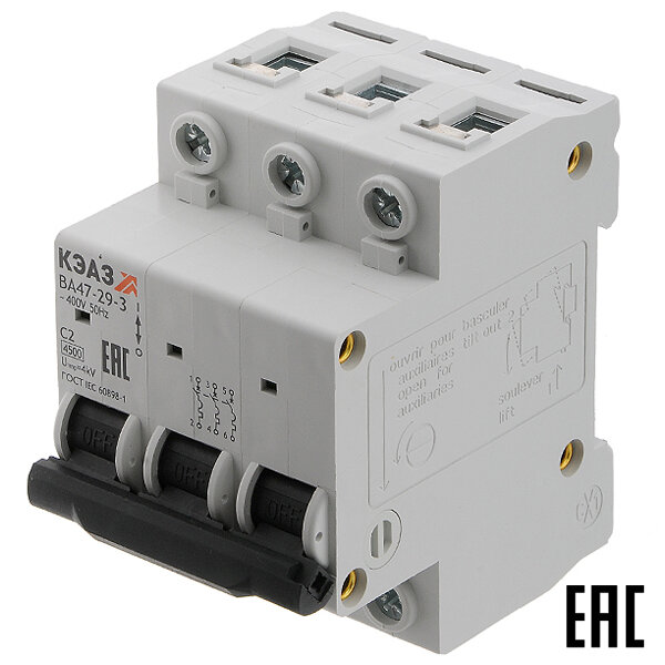Выключатель автоматический модульный ВА47-29-3C2-УХЛ3 (4.5кА) | код. 318290 | КЭАЗ ( 1шт. ) информация:
