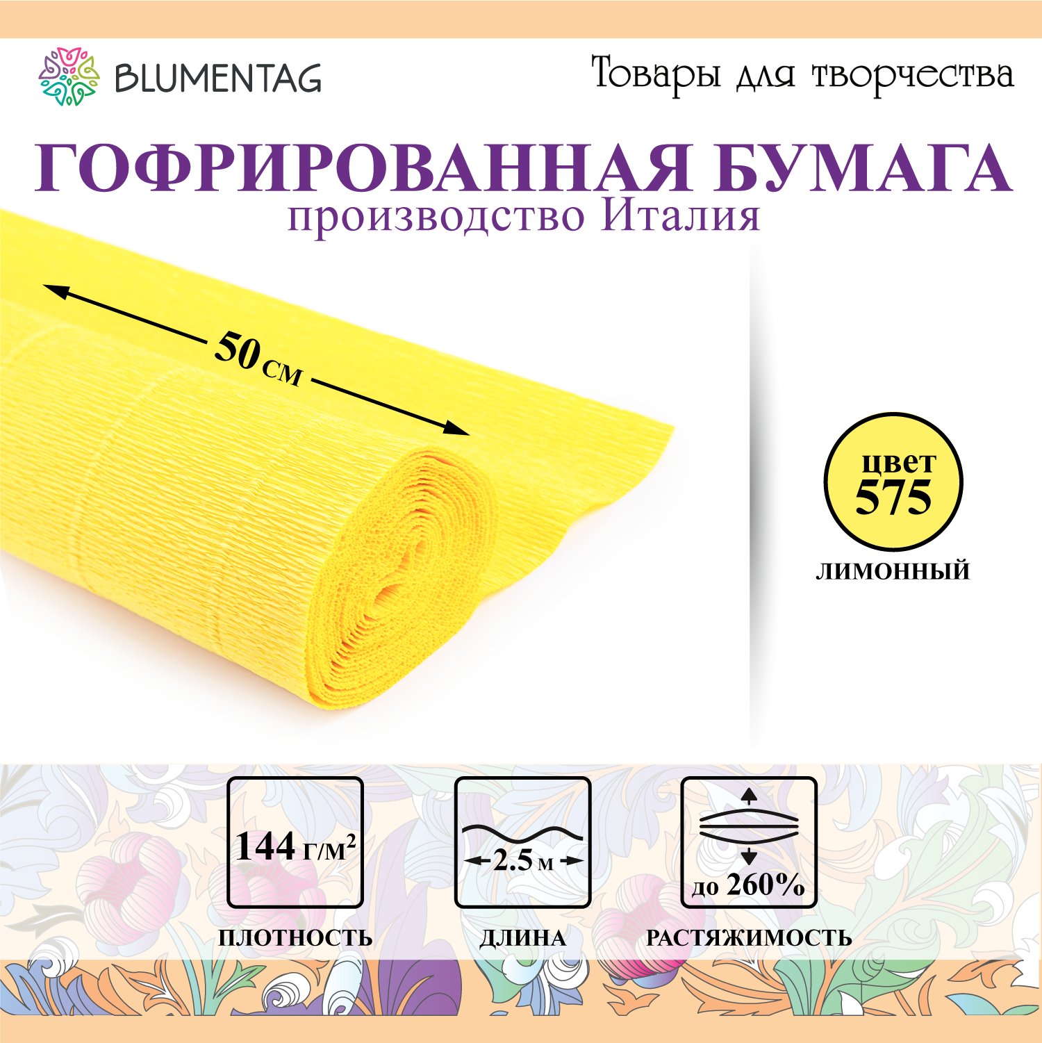 Blumentag Гофрированная бумага GOF-180 50 см х 2.5 м 180 г/м2 575 лимонный информация: