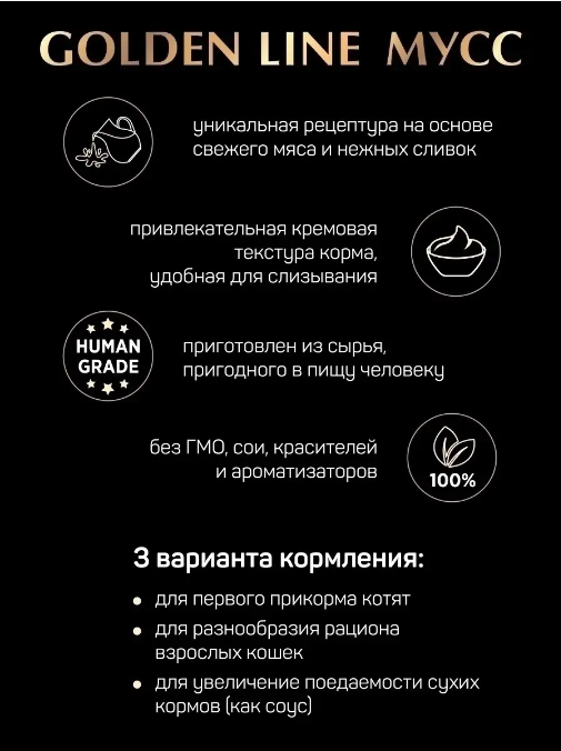 Четвероногий гурман GOLDEN LINE для кошек и котят мусс с курицей банка 100 гр NEW 100 гр х 6 шт 1 138 ₽