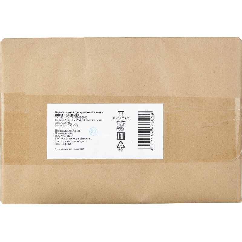Картон цветной тонирован в массе зеленый А4 50 л/уп 200г КЦА4зел, 1790905