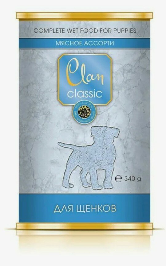 Корм полнорационный консервированный Clan CLASSIC для щенков, Мясное ассорти, 340г, 12 шт.