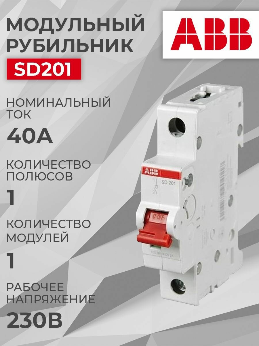 Отзывы на SD201/40 Рубильник 1-полюсный модульный 40А (красный рычаг) ABB, 2CDD281101R0040