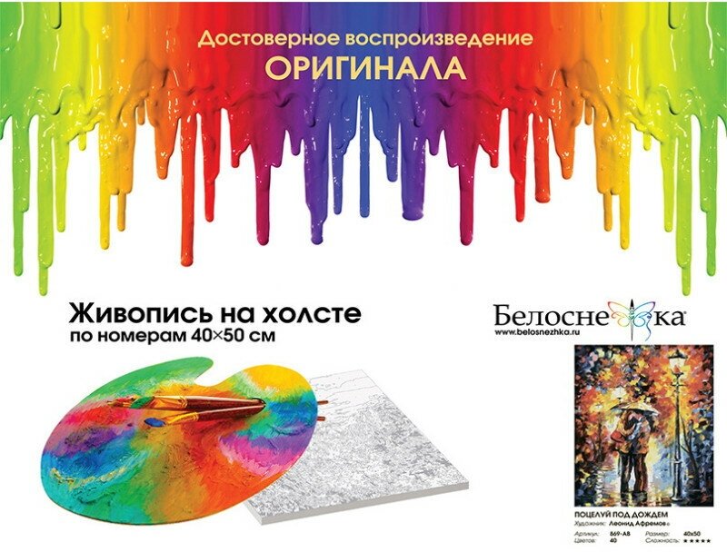Поцелуй под дождем #869-AB Белоснежка Раскраска по номерам 40 х 50 см информация: