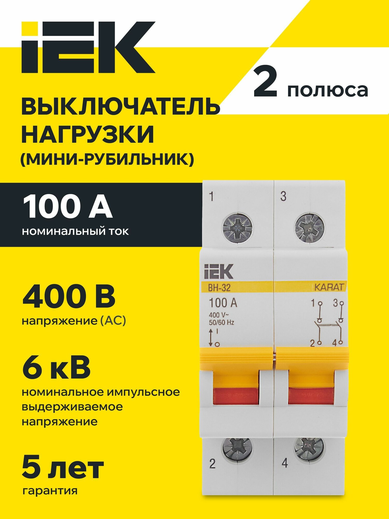 Выключатель нагрузки ВН-32 100А/2П, IEK MNV10-2-100 (1 шт.) информация: