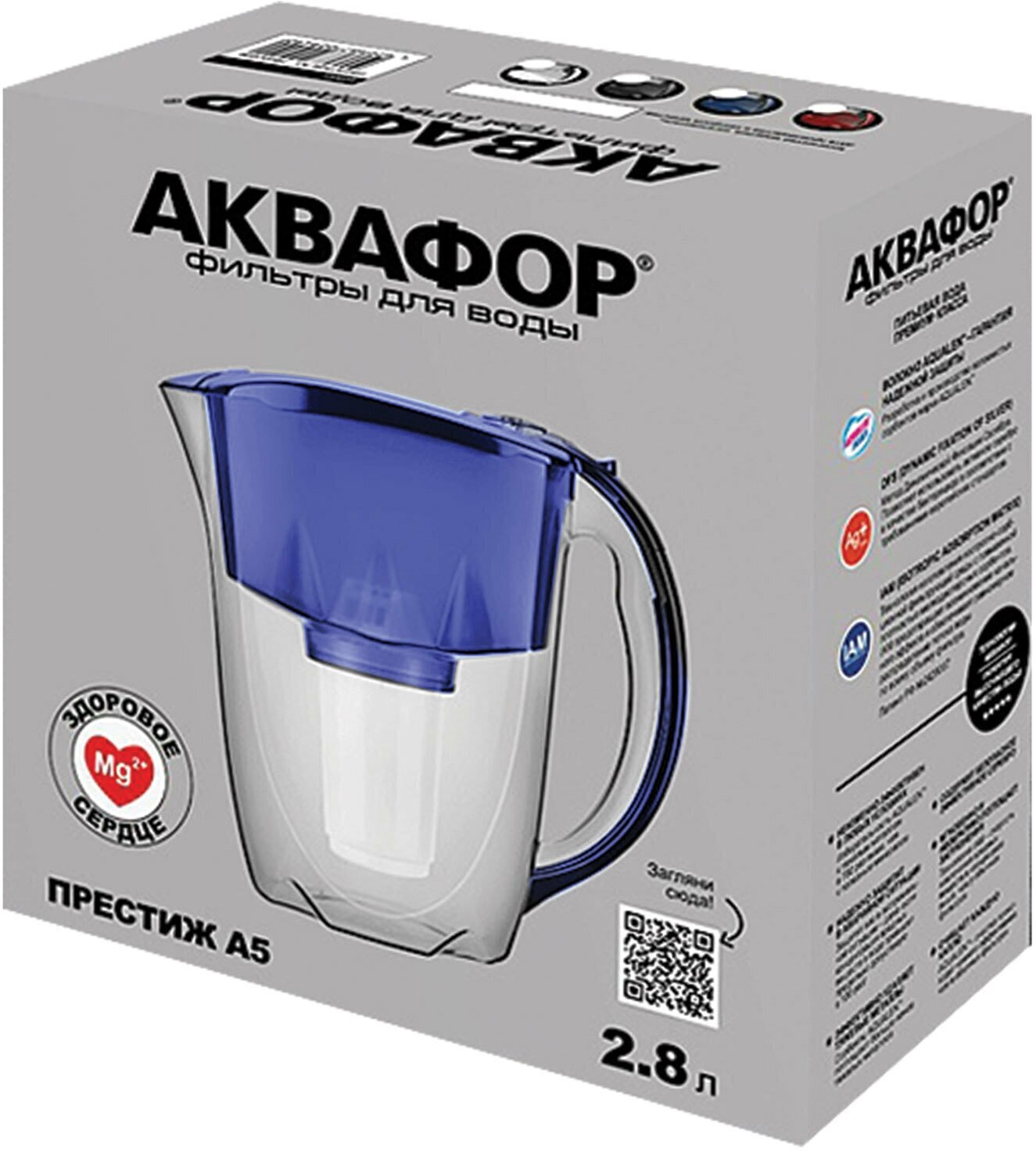 Фильтр-кувшин для очистки воды Аквафор Престиж A5, 2,8 литра, синий информация: