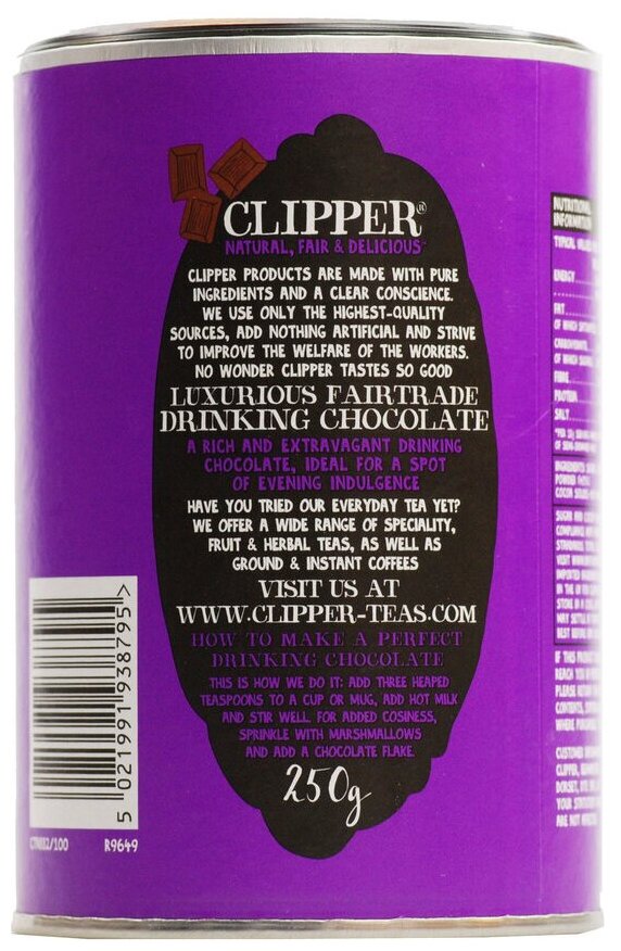 Какао-порошок Clipper Fairtrade Super Cosy Drinking Chocolate 250 г (из Финляндии) информация: