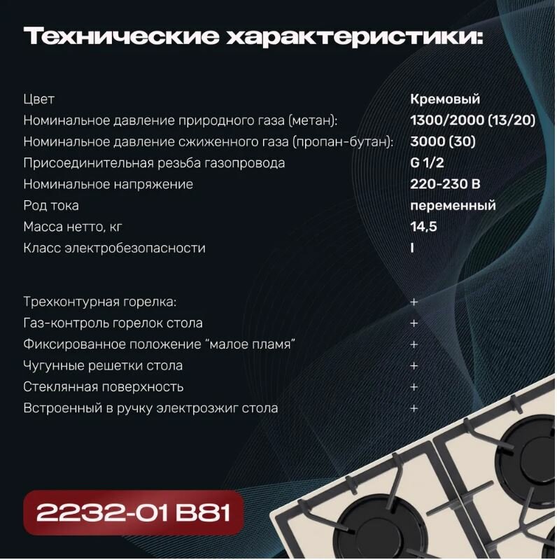 Газовая варочная панель Gefest ПВГ 2232-01 В81 кремовый .