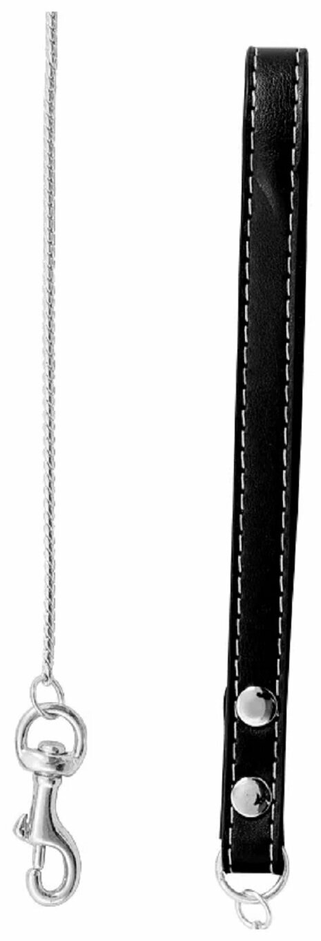 Тriol 11041029 Поводок -цепь с кожаной ручкой "Змейка" серебро 3мм*1100м