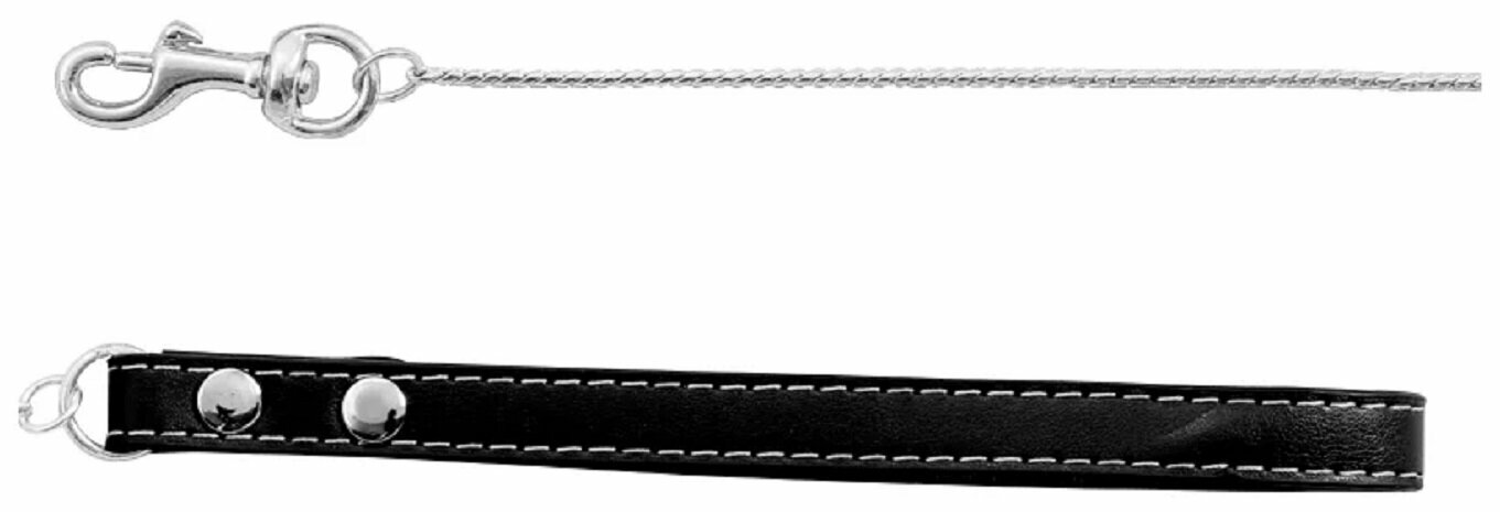 Триол 11041029 Поводок -цепь с кожаной ручкой "Змейка" серебро 3мм*1100м