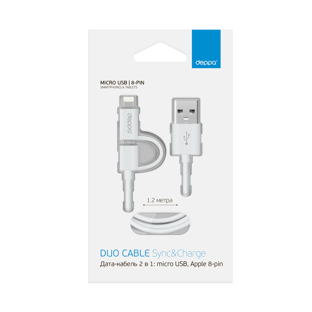 Отзывы на Дата-кабель USB 2 В 1: 8-PIN для APPLE, MICRO USB, 1.2М, черный, DEPPA DEPPA 72204 Deppa 72204