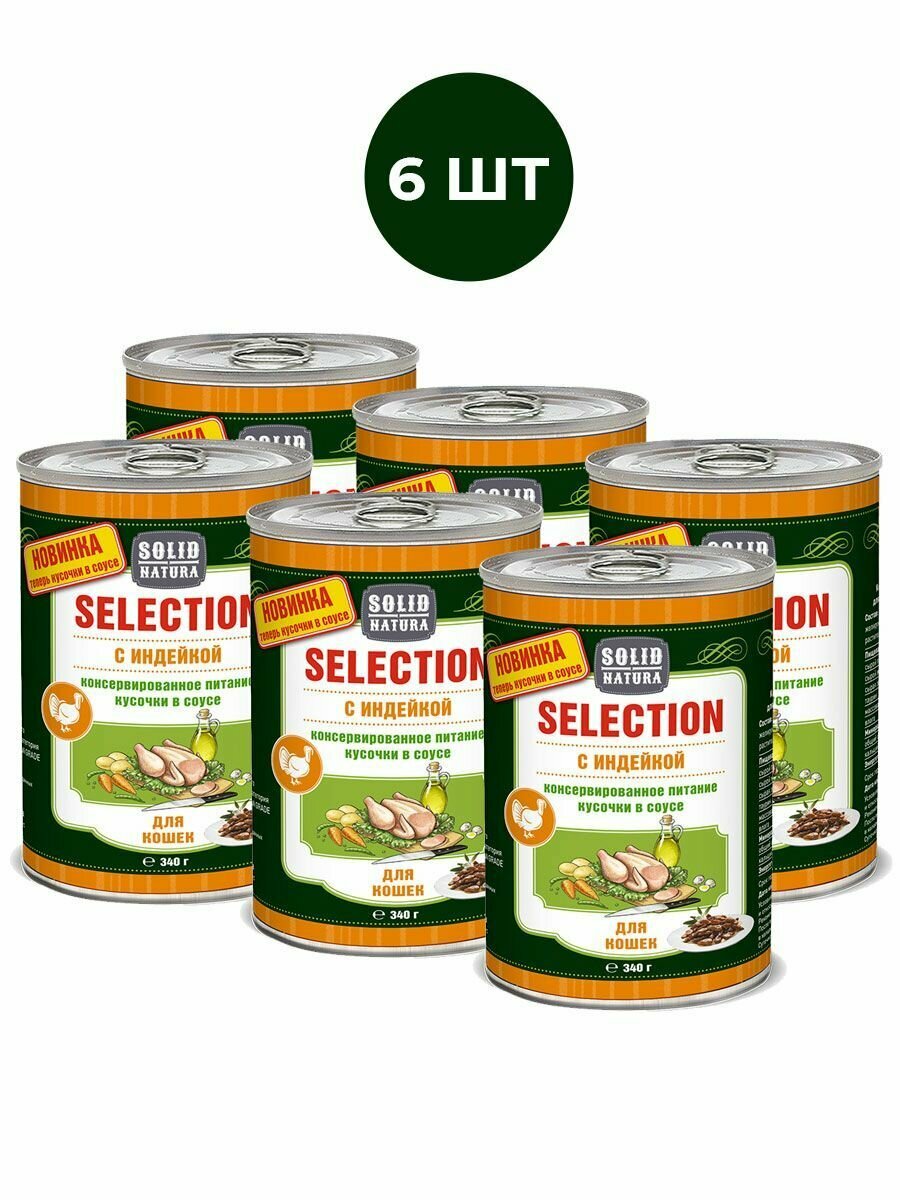 Влажный корм для кошек, индейка Solid Natura Selection, упаковка 6 шт х 340 г информация: