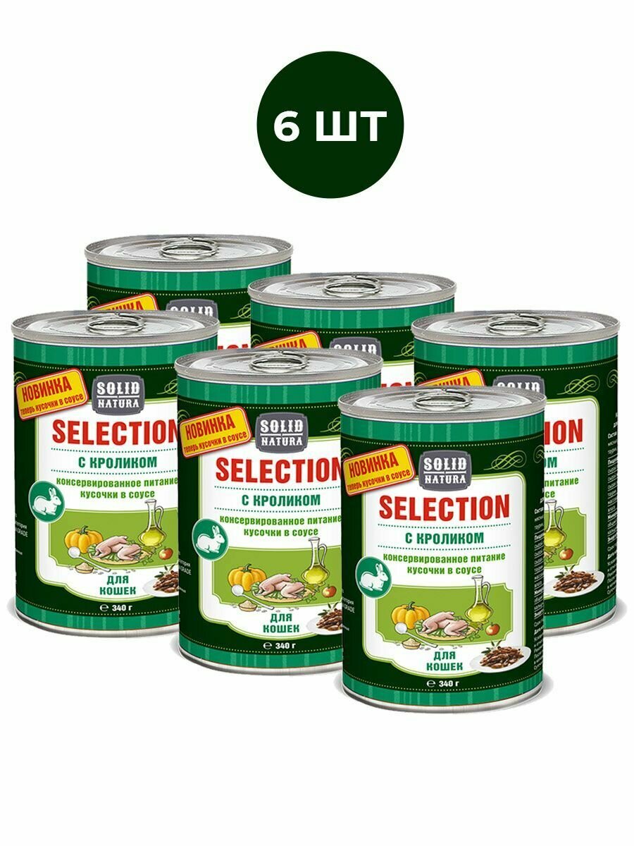 Влажный корм для кошек, кролик Solid Natura Selection, упаковка 6 шт х 340 г информация: