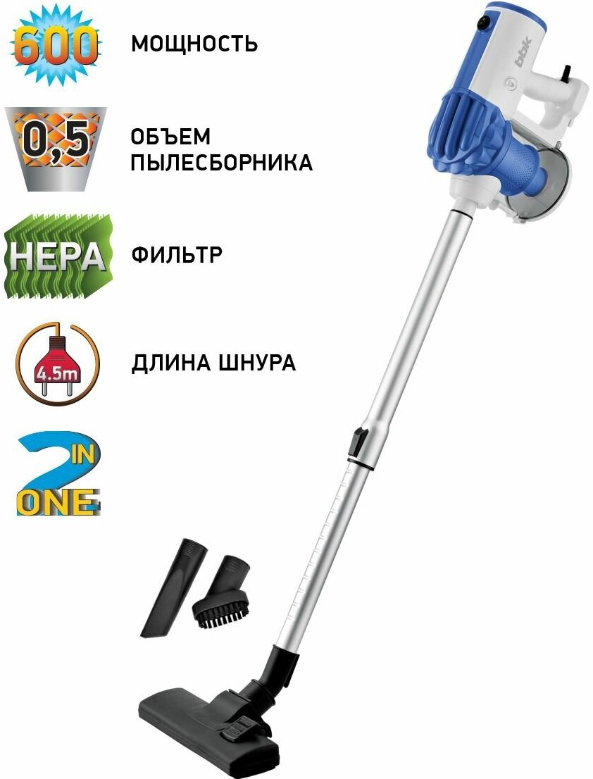 Bbk BV2512 W BL Пылесос вертикальный, циклонный фильтр, 600 Вт, белый синий 2 718 ₽