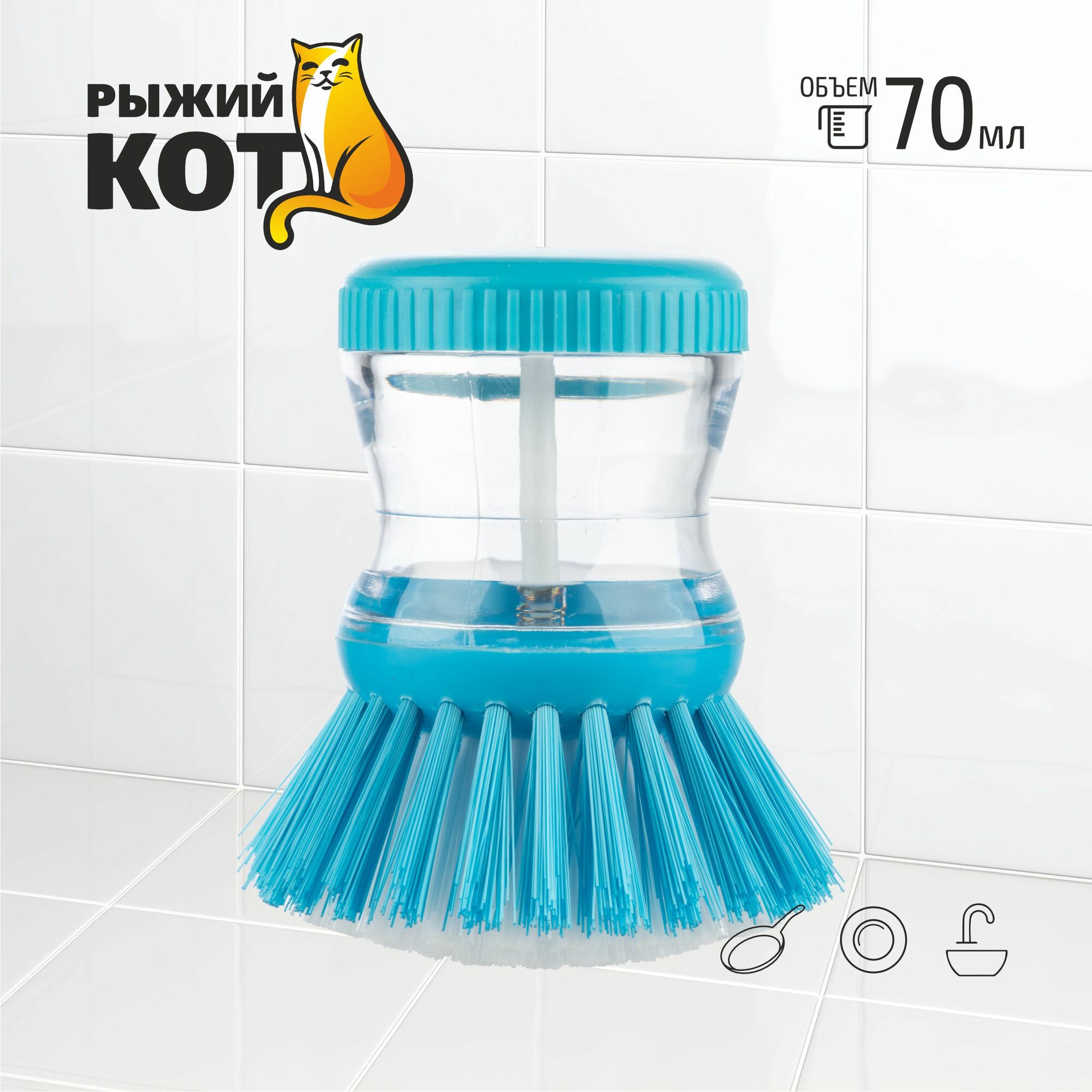 Щетка для мытья посуды с емкостью для моющего средства Рыжий кот KB-05