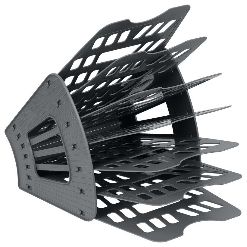 Лоток для бумаг 7-ми секционный, 6 отделений, серый, ЛТ40