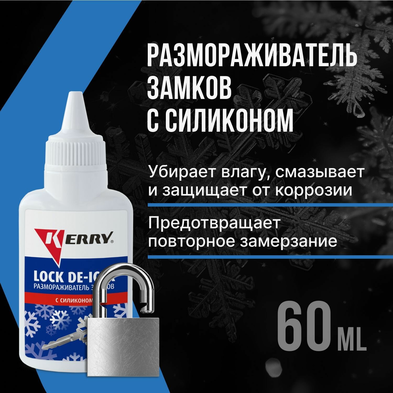Размораживатель замков с силиконом (флакон с дозатором) KERRY 60 мл, KR183 KERRY KR-183