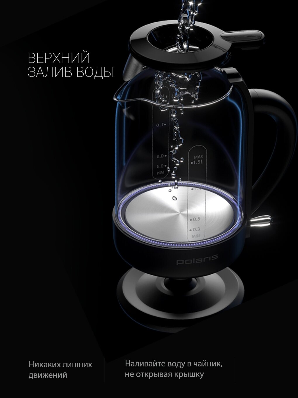 Чайник Polaris PWK1759CGL (1,5 л, 1950Вт,корпус cтекло,"WATERWAY PRO",синяя подсветка), Черный 3 349 ₽