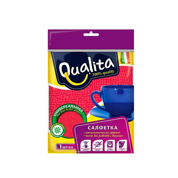 10 цен на Салфетка из микрофибры Qualita универсальная, бордо